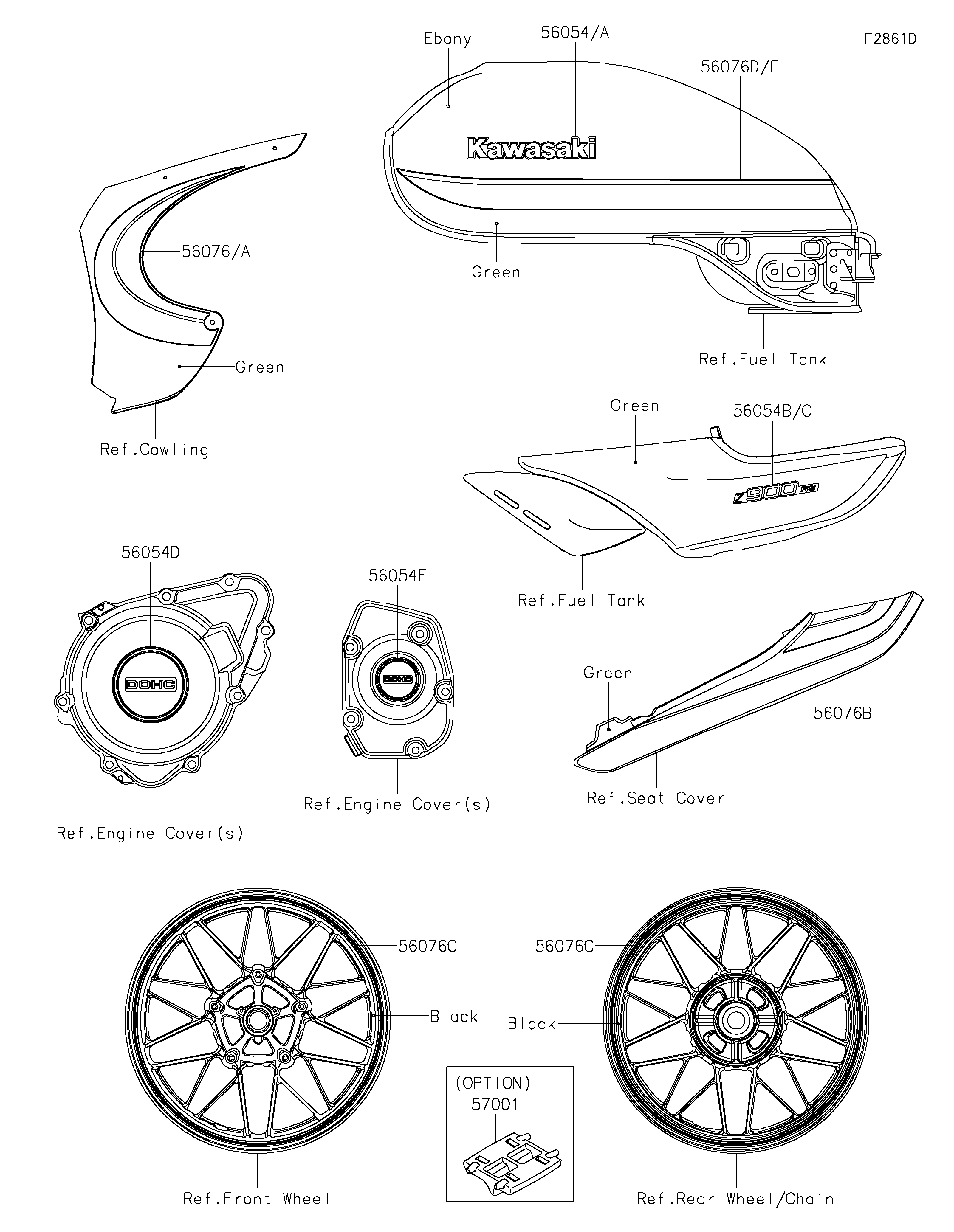 MARK,SIDE COVER,RH,Z900RS,3D 56054C 56054-2285 1