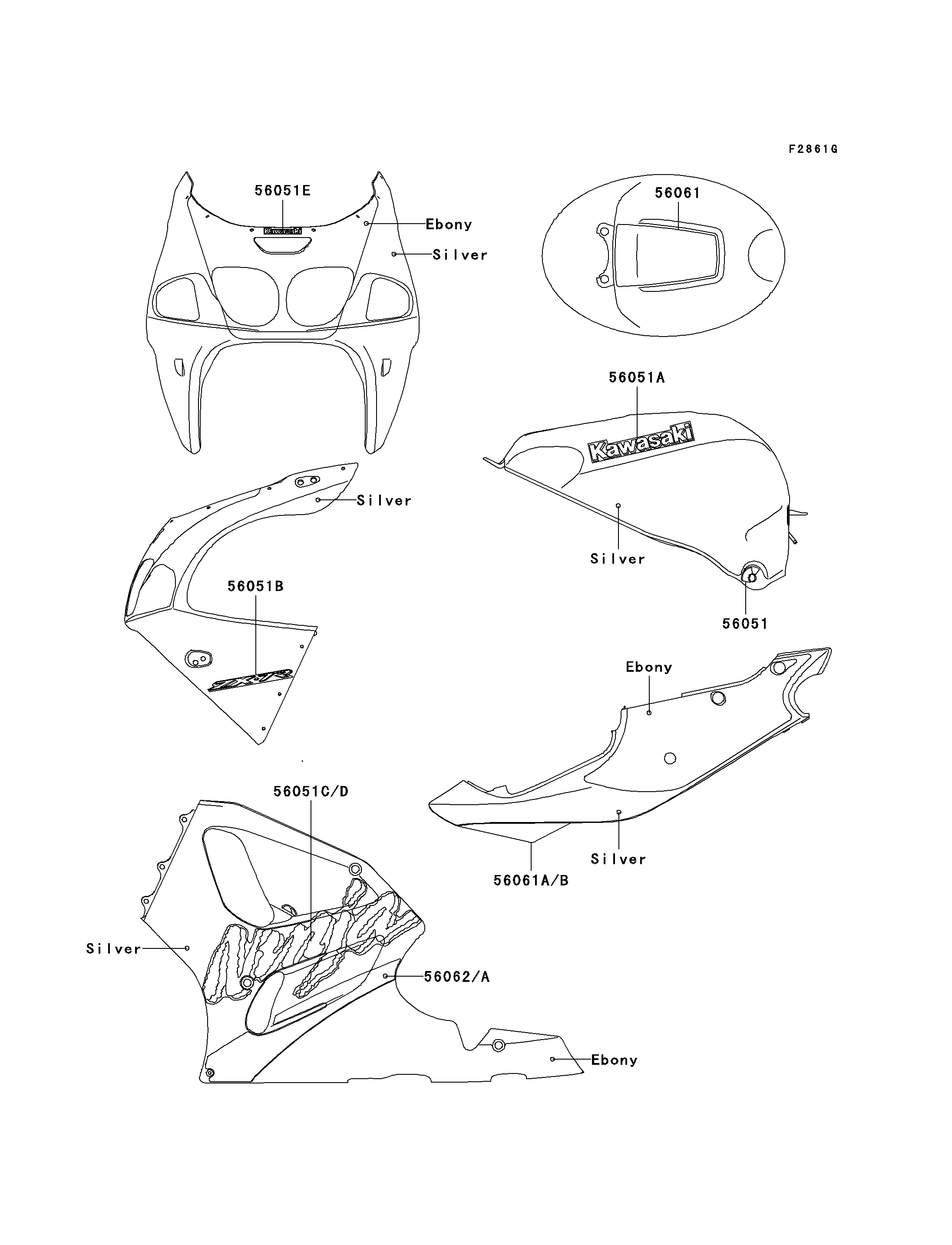 MARK,UPP COWLING,KAWASAKI 56051E 56051-1998 1 CN