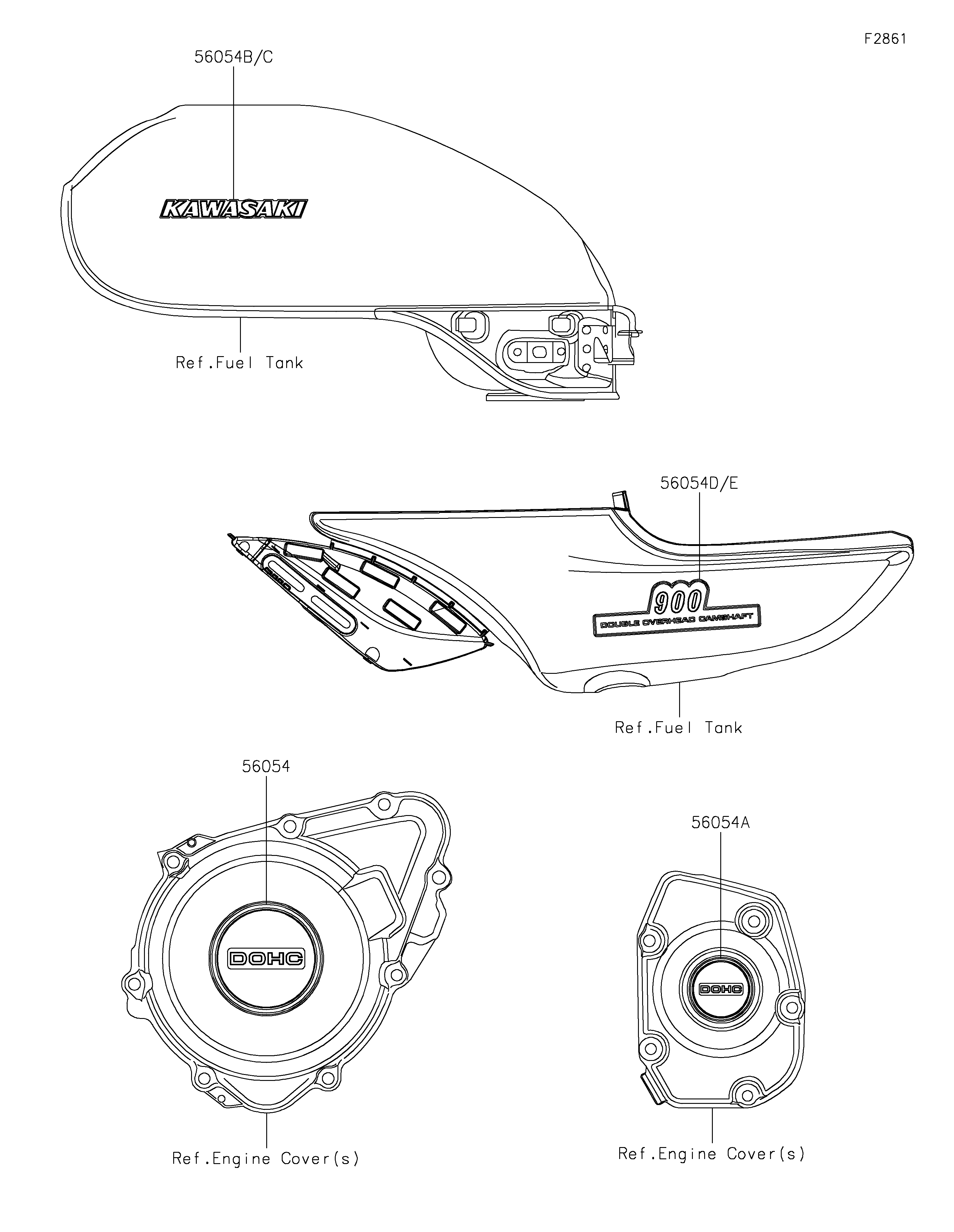 MARK,SIDE COVER,RH,900 DOC,3D 56054E 56054-7024 1