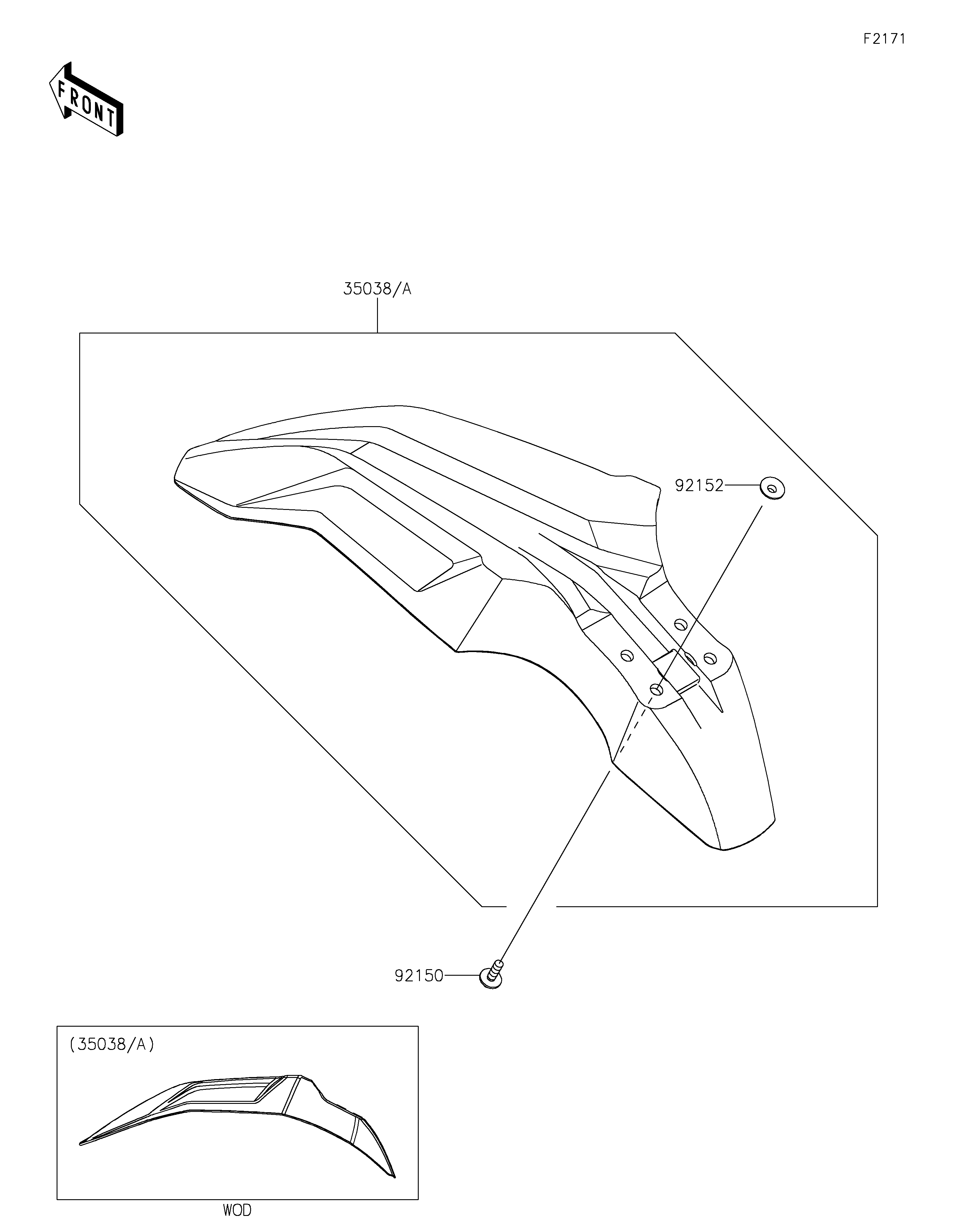 FENDER-FRONT,L.GREEN 35038A 35038-0030-290 1